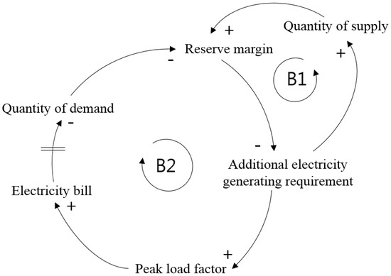 However, the information delay between the electricity demand and the electricity bill makes it difficult for the consumer to get enough decision time to balance the B2 loop. In other words, it is difficult to maintain a stable electricity bill due to information delays in relation to electricity demand and the bill. Figure 3 shows the causal relationship of power supply and demand, in the overall power market.