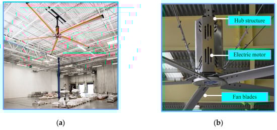 The early emergence of the monstrous fan, called the Big Ass Fan, uses the IM for high volume low-speed fan production []. The motor is designed named power foil X2 plus with 2.0 hp output power as in Figure 5b. The structure of the motor requires a gearbox filled with oil and has heavyweight structure due to the custom gearbox. This design has a few disadvantages due to the large, loud, heavy, custom gearbox; or less powerful DC motor.