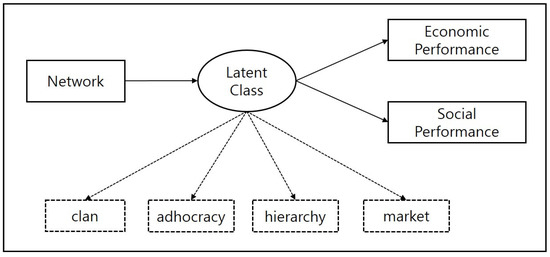 To test these hypotheses, we built a conceptual LPA model. This model was used not only to identify social enterprises’ underlying organizational culture profiles, but also to explore mediating relationships between latent profile memberships and related external variables (including social and economic performance and networks).