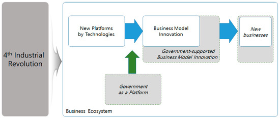 New industries and new business models are essential to prepare for the era of the Fourth Industrial Revolution. This expands opportunities for innovation, which will be the basis for sustainable growth in the future. This study presents a Korean example to guide future government policy. The government can play an important role in the era of the Fourth Industrial Revolution in assisting business model innovation by supporting the construction of open platforms where companies can cooperate and find opportunities for innovation. This can enhance the innovation potential and possibility of latecomers and SMEs. We expect this study to have implications for the role of the governments in preparing for the Fourth Industrial Revolution.