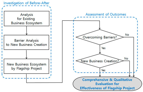An investigation of before and after Flagship Project support includes analysis of existing business ecosystems, barrier analysis to new business creation, and new business ecosystems supported by the Flagship Project. Assessment of outcomes consists of two questions: have the barriers been overcome? Has a new business model been created? After this, the effectiveness of the Flagship Project Support Program will be evaluated comprehensively and qualitatively.