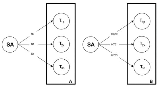 Similarly, Figure 4 represents the division and obtaining of the KAV of each sentiment, showing the average KAV by type of sentiment. Neuron SA represents the developed sentiment analysis, S1–S3 refer to different sentiments, and T1p, T2x, and T3n refer to different sentiments for each topic (namely, positive (p), neutral (x), and negative (n)).