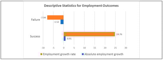 Figure 2 shows a bar chart of descriptive statistics for employment outcomes between companies with successful crowdfunding and companies with failed crowdfunding.