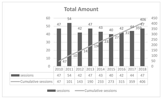 Cumulative sessions table of the number of activities of Kaohsiung Dome in 2000–2018.
