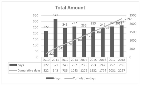 Cumulative days table of the number of activities of Kaohsiung Dome in 2000–2018.
