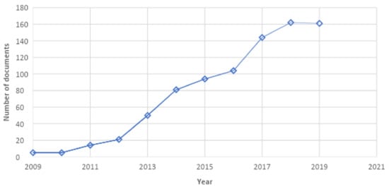 Query in the Scopus database on the documents that contain phrases “responsible research and innovation” or “responsible innovation” in their title, abstract or keywords, returned 841 documents (mostly articles, conference papers and book chapters; including 127 papers from the Journal of Responsible Innovation) published between 2009 and 2019. A clear growing tendency in the number of published documents may be observed; however, the tendency seems to slow down, as shown in Figure 1.