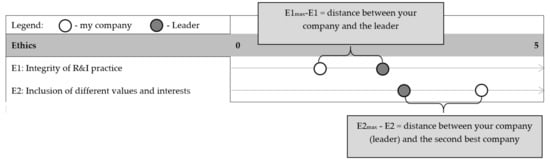 The fourth stage consists of summing up the distances calculated in the third stage, taking into account the weights determined in the second stage. The enterprises may be ranked according to the obtained result. The higher the number, the better the RRI performance. Normalization procedures may be applied if needed.