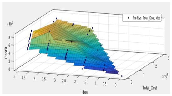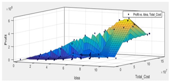 It was found that dynamic SMEs show an increase in cost and increase in ideas that strongly influence the amount of obtained profit in the development of new products through inactive problem perspective. However, at some points, the higher the cost and idea, the lesser the amount of profit (Figure 5). More ideas result in higher costs for new product development, while the consumers of dynamic SMEs are rather passive by only accepting any ideas offered by the producers.