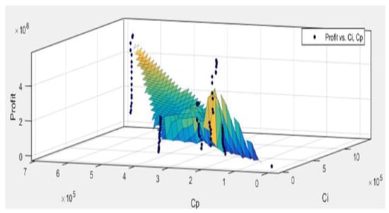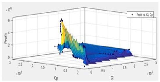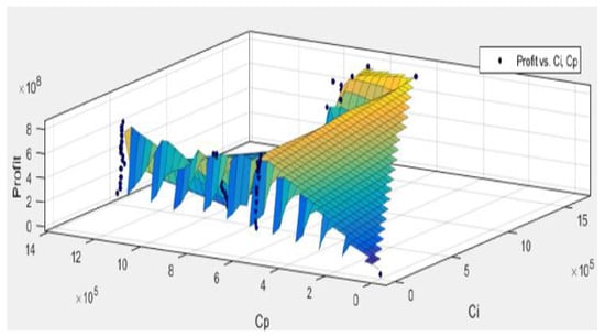 Figure 8 shows that within the ideal condition, to obtain the maximum profit of advance SMEs, the Cp value (production cost) should be between 4 and 8 by the Ci value (idea cost). This indicates that if Cp/Ci < 4, maximum profit will not be obtained, but if the Cp/Ci > 8, the profit will decline.