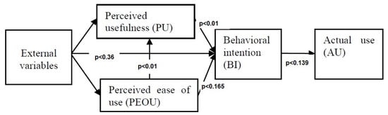 - Davis, F.D.; Bagozzi, R.P.; Warshaw, P.R. User acceptance of computer technology: A comparison of two theoretical models. Manag. Sci. 1989, 35, 982–1003. [Google Scholar] [CrossRef]