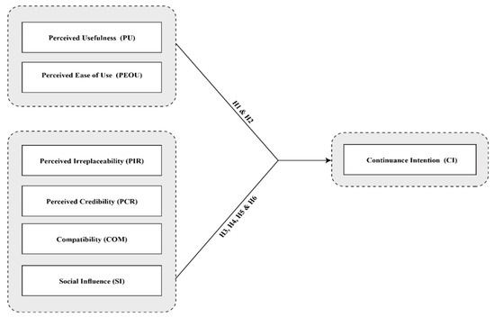 Bhattacherjee [32] defined continuance intention (CI) as an individual’s intention to continue to use a particular technology after the initial adoption process. In the same article, he further mentioned that an individual’s continuance intention to use a particular technology is influenced by its perceived usefulness and perceived ease of use. In the healthcare space, Cho [33] found that perceived usefulness and perceived ease of use influence a user’s continuance intention to use a healthcare-related technology. Therefore, we postulated that:
