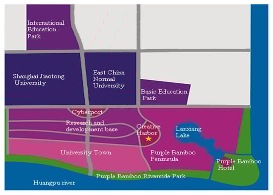 SZIEP is located at ZIZHU—the geographic center of Shanghai Municipality, Minhang District. ZIZHU serves as an important hub for outbound traffic, a major industrial base, and an emerging area for investment in the science and technology sector, including being a developing site for aeronautics. ZIZHU has five functional areas, including a universities area (Shanghai Jiaotong University and East China Normal University), a research and development base with nearly 500 organizations and anchoring 15 national key laboratories, the Zizhu peninsula community, a living area, and SZIEP (Figure 1).