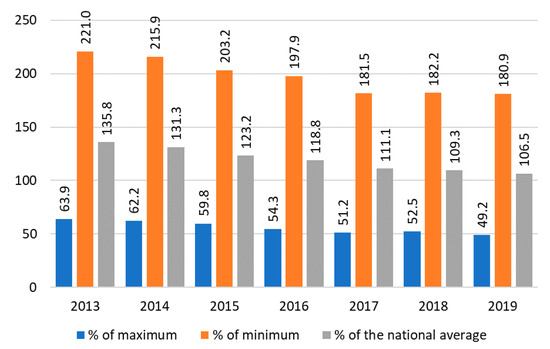 In 2013–2018, the average annual growth rate of wages in public administration was 3.4%, while the average for the economy was 8.0% (