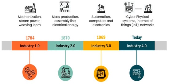 The terms “advanced manufacturing” or “industry 4.0” (I4.0) have been widely cited in the general literature and are directly related to the future of manufacturing and the pursuit of industrial competitiveness. The world is facing a new industrial revolution, evolving at a faster pace than the previous ones. It is characterized by the fusion or integration between the virtual and the real world through elements enabling a greater degree of automation and digitization of processes (see Figure 1). The concept of I4.0 is rooted on a project developed within the high-tech strategy of the German government, towards the automation and digitization of the manufacturing industry [1].