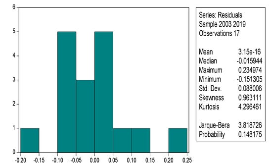 Regression result. Method: Least Squares. Sample: 2003–2019. Included observations: 17.