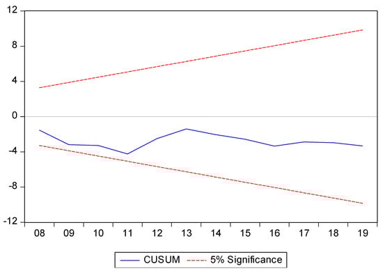 The regression result in Table 5 indicates that the capital market and government bonds have a robust correlation. The correlation (R) value is 97.2%, which is the square root of R-Squared. Thus, it is essential to note that government bonds are an essential chunk of the Nigerian capital market. The result in Table 5 also reveals that R-Squared is 94.5%, which is the coefficient of determination. This result implies that government bonds determine up to 94.5% of the fluctuations in Nigeria’s capital market. The remaining 5.5% is caused by other factors we could not take cognizance of in this study. The Cumulative Sum Control Chart in Figure 2 helps to establish that the regression model is stable. This is shown by the appearance of the blue line between the two dotted red lines.