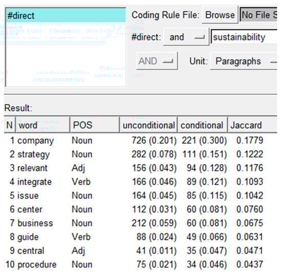 The second method used in text mining was Word Association. This qualitative methodology is widely used in specific research areas and investigations such as psychology and sociology [,]. This methodology is based on inferring which words are most often associated with each other to understand the concepts and themes most relevant to the interviewees that should be studied [,]. In total, four of the most debated words and concepts during the interviews were chosen as objects of analysis.