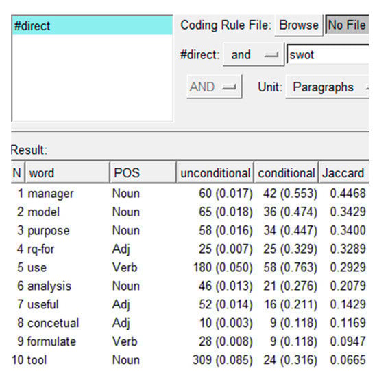 Simultaneously, other keywords such as SWOT analysis have great importance in these interviews’ content and must be analyzed in detail, considering their relationship with other frequently used words. As it was inferred from the interviews, this is still one of the most used tools by any company’s management, however, people have not realized the correct way to work with it [].