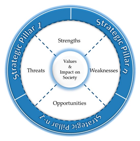 In this research, the SWOT (strengths, weaknesses, opportunities, and threats) analysis was taken as an object of study [], because it is still today one of the most used tools by any company regardless of its size or industry where it operates and also because of its simplicity and clarity with which it is used []. Throughout the literature review, many criticisms have been made to SWOT analysis [], however, no author identified a very serious gap that is not incorporating sustainability as one of its dimensions, nor integrating the values and impacts of each decision at the heart of its strategic formulation.
