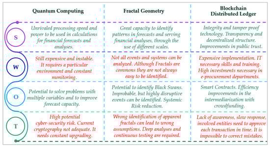 - Identification of a useful framework of current and forthcoming Fintech applications classified according to the three main related sciences to perform a consistent SWOT analysis of the Fintech industry.
