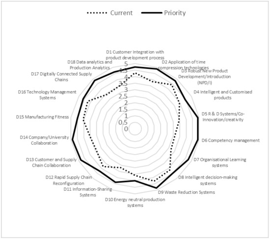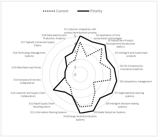 In an attempt to remain sustainable, all the SMEs surveyed had implemented or were planning to implement increasing levels of automation or digital production systems into their manufacturing operations [68]. All of the medium-to-large SMEs (regardless of sector) had implemented automated technologies and systems within the previous 5 years. Utilization of such systems was high in that automaton was the central driver in their manufacturing processes. However, none of the automated systems were connected to their respective supply or demand chains through appropriate cyber physical systems. Therefore, the development of digitally connected supply chains was not possible and was seen by the MDs as a major limitation in those companies. Furthermore, the lack of digital connectivity affected the SMEs in the development of accurate decision-making processes. Therefore, automation and its ability to integrate the technological and managerial systems together through appropriate CPS technologies is seen as a future strategic need.
