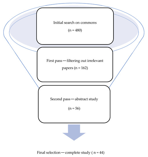 Brocke, Simons [34] argue that describing the process of searching the literature is important for other scholars to be confident about the results. One of the challenges of any literature review is the selection of keywords to search for. There are multiple interpretations of Commons, including but not limited to, Innovation Commons, Information Commons, Digital Commons, Knowledge Commons, and Library Commons. The researchers wanted to understand all the interpretations of Commons and not limit the search to a particular type of commons. Hence, it was decided to just use “commons” as the keyword.