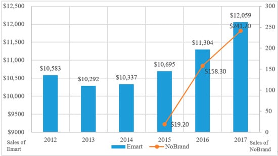 Emart and NoBrand Sales (USD). Source: Economychosun (2018) [31].