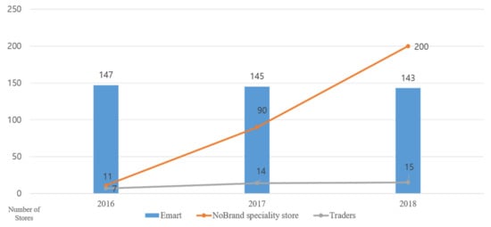 Number of Emart, NoBrand specialty and traders stores. Source: Hankyung (2019) [34].