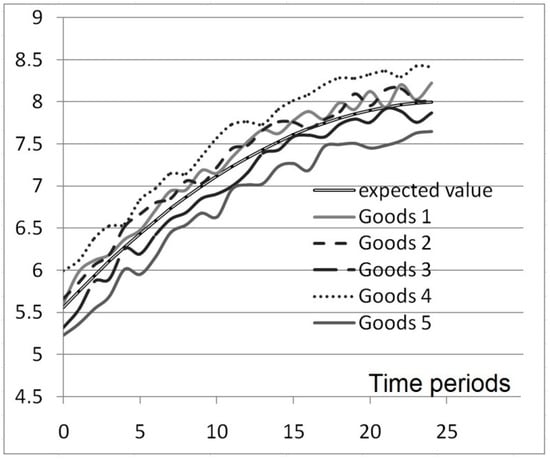 Since the volume of demand for various items in the assortment matrix is usually seasonally dependent with the period , then to determine the mathematical expectation of the demand value , it is convenient to apply the Fourier decomposition in the following form: