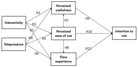 Impressive progress has been made in information and communication technology. Applications in visual communication have displayed innovation, which may be considered in mobile learning software development. Telepresence describes the user’s experience of the virtual reality environment [51,52]. Steuer [53] explained that telepresence is relevant to people’s feelings about the system environment. Park et al. [54] suggested that there is a high positive correlation between telepresence and perceived usefulness in users’ adoption of e-tail websites. In addition, Chuang et al. [37] investigated two groups of samples from Taiwan and Thailand, and results from both samples showed that the perceived usefulness and perceived ease of use have a positive relationship in social networking services. Hoffman and Novak [55] developed a fundamental model to measure the constructs of telepresence and flow experience, and the results showed that telepresence strongly predicts the flow in the use of the commercial web. Therefore, based on the literature review, this study proposed the following hypotheses: