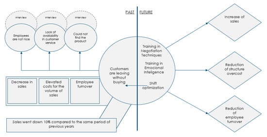Problem solving is a systematic, organized, and focused process [21] that is established in three main moments: the past, the present, and the future. The entire analysis exercise must begin with a deep and rigorous appreciation of the problem to ensure that it is perfectly understood, defined, situated, objectified, being based on facts, or on contexts close to reality (Figure 4).