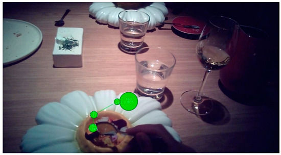 Dishes and wines were served according to the chef and sommelier’s proposal, and biometrics were collected to identify the dishes and wines with the important emotional impact on consumers (Figure 2). Visual attention (eye tracking), level of emotional arousal (electrodermal activity), and brain activity (based on data collected by electroencephalography) were recorded.