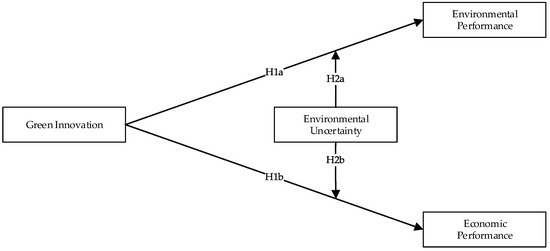 The content of this paper is organized as follows. In Section 2, the study provides an overview of the related literature on green innovation, environmental uncertainty, and environmental/economic performance. In addition, in this section, the relationships between variables are explained based on the literature, and study hypotheses are formed. In Section 3, the sample selection, questionnaire, data-collection stages, and analysis methods used in the study are explained. In Section 4, the analysis results with tables and figures are presented. In Section 5, the results are discussed within the context of the relevant literature. Section 6 concludes the paper with the study’s implications and limitations, and provides some suggestions for further research.