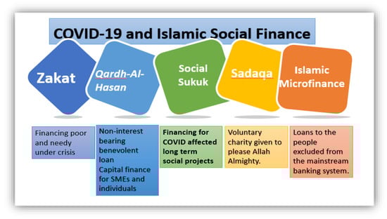 - Social Sukuk: Social Sukuk is another Islamic social finance extremely important tool to fight the economic adversities of COVID-19 during and post COVID [117]. Social Sukuk is the new and innovative way to fund social services for redistribution of wealth and achievement of social justice [118,119]. Social Sukuk brings the social sector into the discourse of Islamic finance, which has largely been ignored compared to the private, business, and government sectors. Islamic Development Bank (IsDB) has issued a COVID-19 related Social Sukuk in the market showing the contribution of banks in the capital market to help COVID-19 affected people. The intention of issuing the social Sukuk is to minimize the economic damages caused due to COVID-19 and build resilience against future shocks. The IsDB Sukuk is serving as the starting point in the Islamic capital market as other Islamic financial institutions follow suit in the coming months and these Sukuk serve as a boost to the struggling industries due to COVID-19 [5,6].