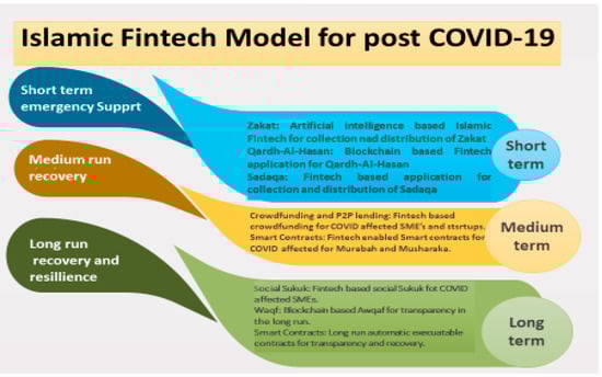 Short run is the period less than one year and it needs to tackle some of the most urgent matters. The most important and urgent matter of concern is, of course, managing the current uncertainty and providing financial benefits to the affected and vulnerable sections of the society. This is where Islamic finance is strong, and it has certain financial services like Zakat, Qardh-Al-Hasan, and Sadaqa, which are tailor made and well suited for such a situation. Zakat is one of the most powerful financing tools available in Islamic social finance and its basic principle is for it to be given to the poor and marginalized. Zakat cannot be given to everyone but only to the one who are poor and fulfills the criteria laid down by sharia to be called poor [126]. An artificial intelligence-based Zakat system must be developed to provide immediate cash transfer benefits to COVID-affected individuals, SMEs, and those who are eligible to receive it as per sharia. The Fintech based Zakat management system as proposed by [17,82] will ensure more transparency and efficiency in the Zakat collection and distribution.