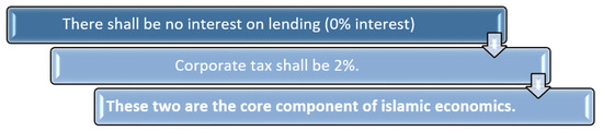 Another Islamic social finance tool which can be utilized in the short run is the Qardh-Al-Hasan. It is a benevolent loan provided to the poor and needy in the time of crisis without any interest. The interest free loan is the need of the hour as during the global financial crisis Nobel prize winner economist ‘M. Allais’ suggested to bring the interest rate to zero in order to overcome such a crisis [17]. He proposed the idea that Islamic Fintech-based Qardh-Al-Hasan can reach individuals and SMEs to provide immediate relief in the short run. Qardh-Al-Hasan can be provided to anyone with need as it has no conditions as in the case of Zakat [127]. As it is depicted in the Figure 6 below, zero or non interest based financial services and tax rate of around 2% (2.5% in case of Zakat) is the core competency of the Islamic economics.