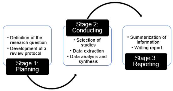 The systematic literature review has been widely used in management research as a research strategy aimed at situating the literature on a given topic in a systematic, transparent, and replicable manner [11,12]. A rigorous literature review should follow a well-defined method that provides detailed explanations of how it was conducted and the relevant works selected so others could reproduce the review following the same steps. Systematic literature reviews analyze and synthesize the works published by researchers and academics [13]. Tranfield et al. [12] propose a systematic literature review framework based on a three-step approach to provide evidence-informed management knowledge: (1) review planning, (2) review conducting, and (3) results reporting [13]. Figure 1 summarizes these stages.