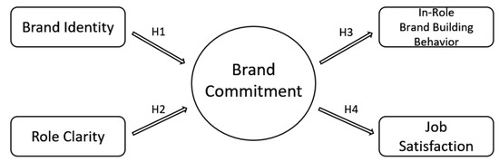 Ref. [28] examined the dimensions of commitment to the organization as antecedents of employee behavior and suggested that organizational commitment also impacts individuals’ psychological attachment to organizations. Brand commitment can help instill a sense of personal competence in employees, but beyond that, it can also kindle the desire to deliver the brand promise. The degree of employee brand commitment can also serve as an indication of employee brand knowledge. Brand knowledge can help them thrive in their roles, and when combined with a clear understanding of organizational expectations, it can result in increased employee commitment to the organization [29]. Therefore, the diffusion of brand-related information can improve employee role clarity and identification with organizational values, which can lead to improved employee performance.