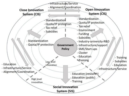 | Government Policy Instruments (S, D, E) with Detailed Content | Impact on Macro Innovation Systems (CIS, SIS, OIS) |