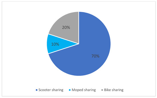 From the point of view of operators’ openness to innovation, the answer was that 100% of the respondents are open to implementing all kinds of innovation in their companies. Importantly, however, openness to innovations begins to have a completely different meaning in the case of open and closed innovations. The responses received show that only 40% of respondents are ready to support open innovation. A total of 40% of the respondents who expressed interest in open innovation were micro-mobility operators of scooters, mopeds, and bicycles. A detailed diagram is presented in Figure 3.