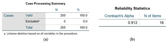 General statistics: (a) case-processing summary; (b) reliability statistics.