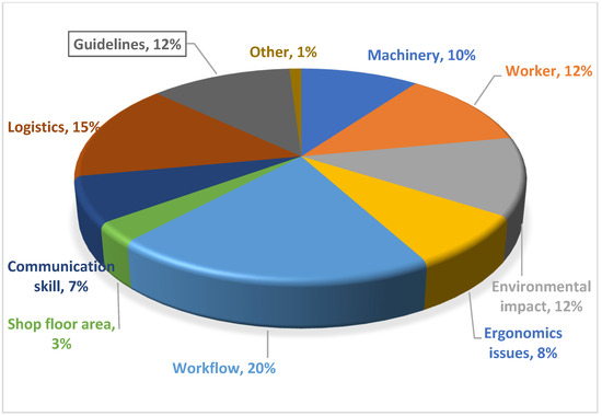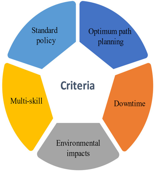 The proposed model for smart lean–green implementation and management key was based on the accumulated experience of previous research and adopted the essence of various methodologies implemented in all research that wanted to simultaneously improve environmental management and production shop floor management [6,7,8,10,11,12,13,20,44,46]. The criteria of the proposed model are described in Figure 4.