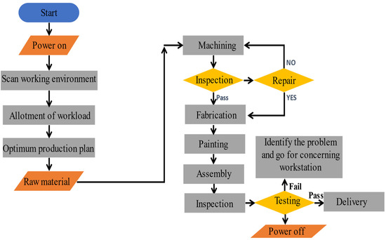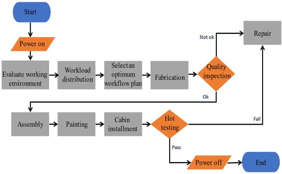 The developed production workflow was decided by different discussions, interviews, and meetings conducted with present employers’ staff. As a result, the developed workflow shows the optimum path between each workstation. Furthermore, it was prepared by eliminating different wastes identified on the production shop floor, including environmental and shop floor wastes.