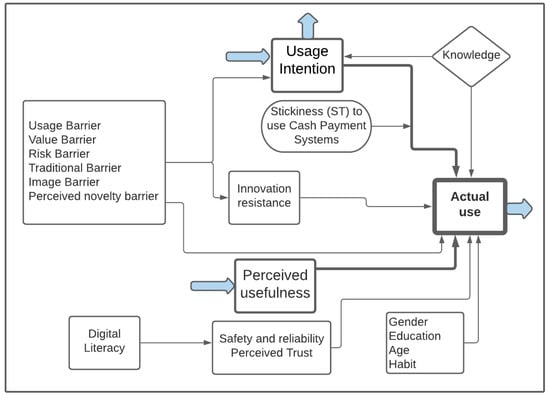 - Balakrishnan, V.; Shuib, N.L.M. Drivers and inhibitors for digital payment adoption using the Cashless Society Readiness-Adoption model in Malaysia. Technol. Soc. 2021, 65, 101554. [Google Scholar] [CrossRef]