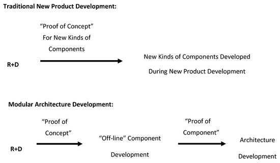 For the reasons stated under MDR No.1 above, firms should not try to resolve technical uncertainties about new kinds of components as part of modular architecture development processes. Rather, new kinds of components should be investigated and developed through parallel, decoupled component development processes (see the discussion of “Decoupled Architectural Learning” from Figure 2c in Sanchez and Mahoney [6]). These “offline” development processes should be focused on developing components for next-generation and future-generation architectures identified through a firm’s strategic planning and capability development processes [24].