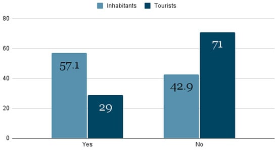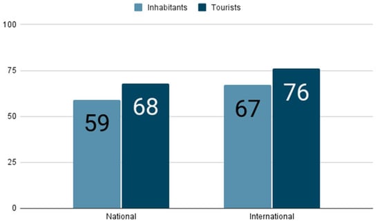 Thus, the results will be presented below, differentiated according to the response categories inhabitants and visitors. They will be graphically represented separately, but in unified figures to improve the understanding of the results.