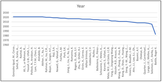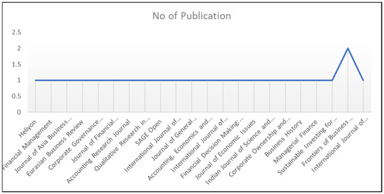 Figure 2 shows that there have been minimal studies since 2010; the highest number of studies has been seen in the current year 2021. The merge of institutional investors and education is the niche to explore the top authors because all the related authors have only one article each. It is difficult to say which author is the lead author. Figure 3 shows the lead journals, and Figure 4 shows the lead authors. From Figure 3, Frontier of Business Research in China has topped the journal list with a publication score of 2, and the rest have only 1 publication score.