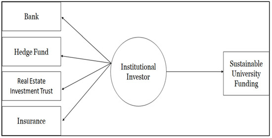 Therefore, the role of institutional investors and a sustainable university funding model will bring a revolution to the funding of education systems and contribute directly towards social development specifically to SGD 4—achieving quality education, this research model can be named the Institutional Investor and Sustainable University Funding (II-SUF) model. In this proposed model, the insurance company’s role is seen in the university context as providing insurance to the students and staff, which can help with the positive acceptance of institutional investor participants in universities. Likewise, other institutional investors like banks can also act as investors in academic research and development as partners, leading to new banking businesses apart from their usual traditional product offerings. Banks can also do their own due diligence and in-depth assessments before funding the projects.