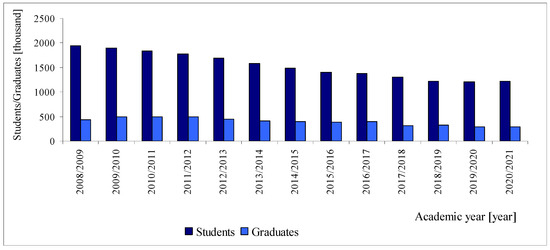 Students and graduates of universities in Poland in 2008–2021. Source: Own research based on data [52].