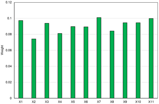 - To determine the weighted sums of PDA and NDA for each alternative (from Equations (12) and (13)):where wj is the weight of the j-th criterion determined according to Equation (14):wherewhere nij is the proportion of samples in time t in the i indicator.